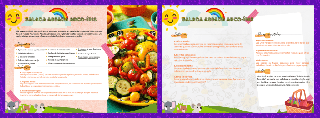 Após a compra, você receberá imediatamente acesso ao nosso portal digital, onde todos os arquivos PDF das receitas e das histórias estarão disponíveis para visualização e download. Você pode acessar essas histórias e receitas em qualquer dispositivo com internet, a qualquer hora, garantindo flexibilidade para se adaptar à sua rotina e às necessidades do seu filho.